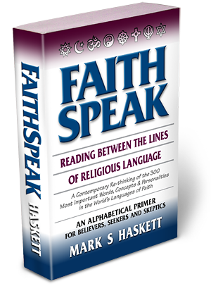Mark: Like I admit in Part One, some words in the Lexicon are basically excuses for me to talk about some of the wider issues in our religious and spiritual journeys, from this new point of view. But it’s not like I’m claiming to have “the last word,” either. More like starting a discussion. Or continuing a conversation that probably started in the reader’s mind long before he or she picked up my book. And if there’s ever a FaithSpeak Two, it’ll probably be inspired by my readers’ responses, and whether this new perspective has produced any positive results… in their personal lives or their communities. Maybe even in the wider world.